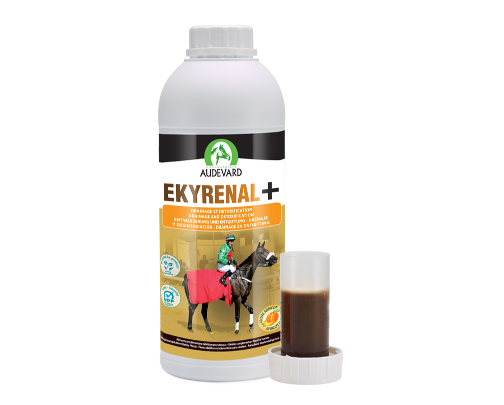Le métabolisme et l’effort sportif produisent des déchets (acide lactique, ammoniac, ...) dont l’accumulation peut devenir nocive pour l’organisme du cheval. L’élimination des déchets et des toxines est assurée par le foie et les reins, deux organes complémentaires et indispensables. S'ils perdent une partie de leur capacité opérationnelle, même faible, le fonctionnement de l’organisme est perturbé et la récupération après l’effort se trouve ralentie. Un soutien nutritionnel spécifique est donc particulièrement recommandé pour soutenir les fonctions d'élimination, notamment en cas d’insuffisance hépatique chronique. Il est également très utile pendant la période de récupération consécutive à un effort sportif intense. EKYRENAL+ a été conçu pour répondre aux besoins d’élimination des chevaux.