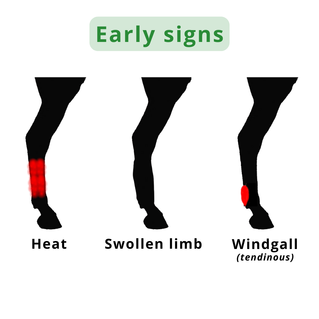 - Early Tendonitis: In this stage, the fibres sustain minor damage, and the horse may experience minimal or no lameness.