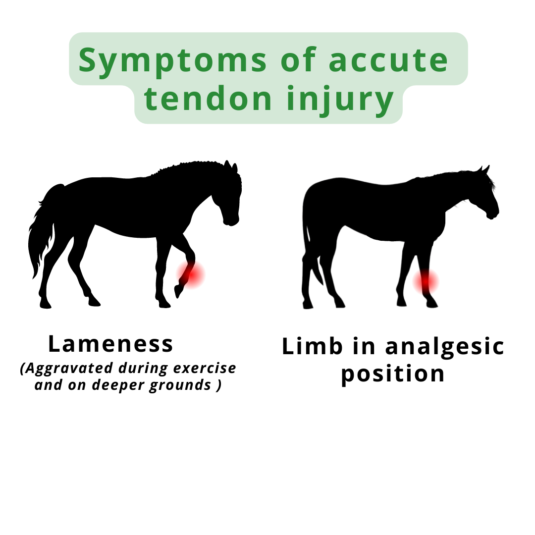 - Acute Tendonitis: The fibres are moderately to severely damaged, often resulting in noticeable lameness, the severity of which correlates with fibre damage.