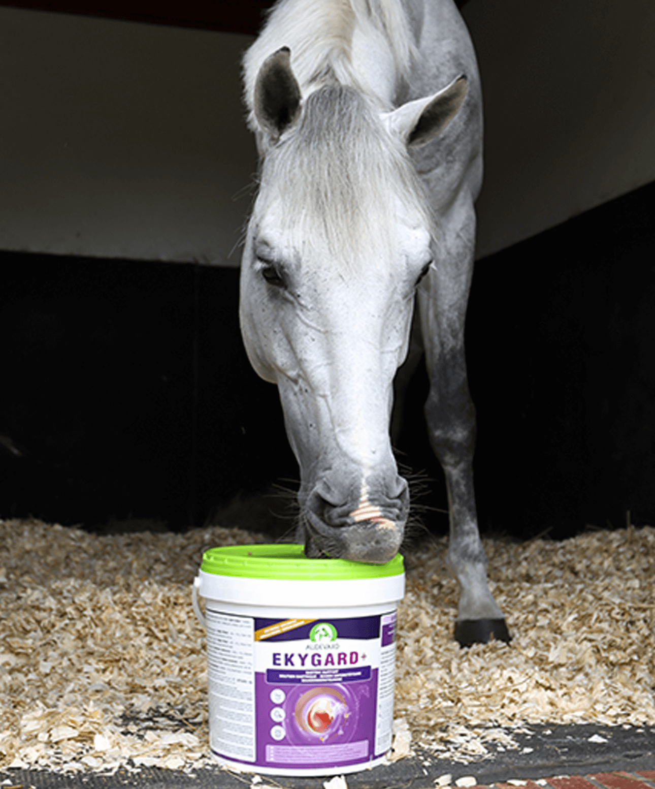 Ekygard+ is a supplement that offers an enhanced triple support of the horse's stomach: helps buffer gastric acidity, supports the mucosa and balances the flora.